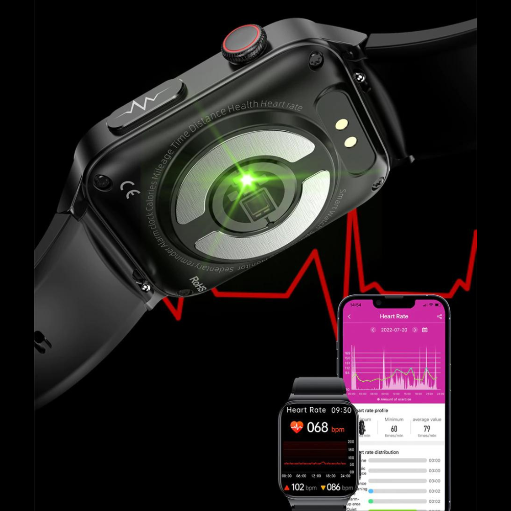 The PPG bio-tracking optical sensor can easily measure heart rate, blood oxygen, blood pressure, respiration rate and arrhythmia of atrial fibrillation with one button, so that you can know your health status anytime, anywhere.